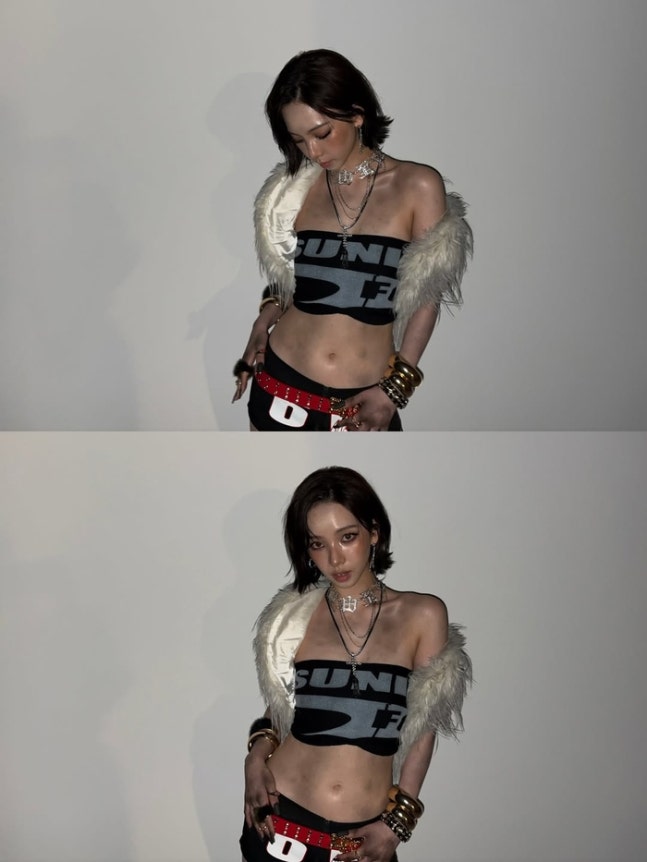 Karina a récemment partagé plusieurs photos sur ses réseaux sociaux avec la légende « 늦은 자켓 » (« veste tardive »). Ces clichés sont issus des coulisses du shooting pour le single « Dirty Work » d’aespa.